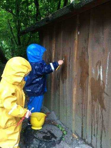 Vi forsøger at være så meget ude som muligt, men der er altid små grupper af børn, som tilbydes mindre legegrupper eller aktiviteter med sprogligt fokus indenfor.